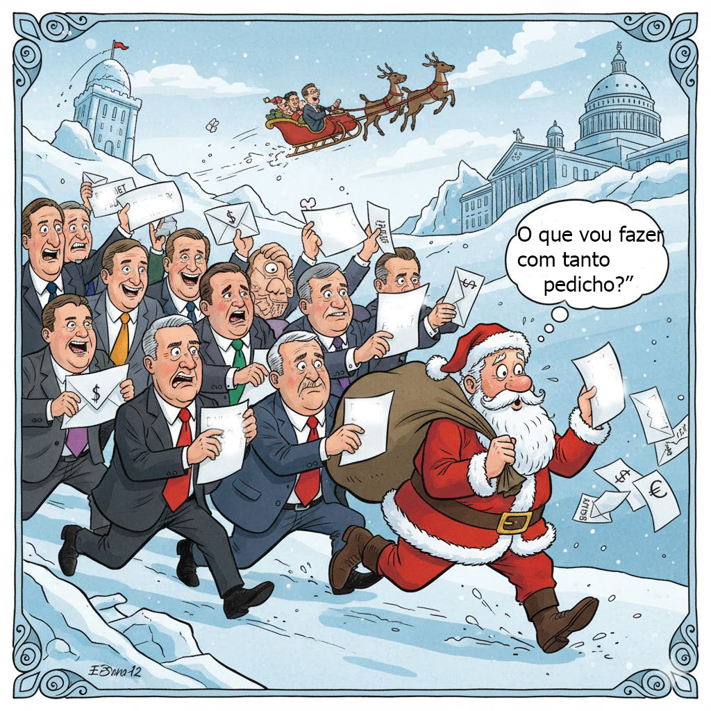 “Papai Noel, respeitosamente venho até sua onipresente presença para perguntar o que está acontecendo com você, pois em vários natais eu peço o mesmo presente e meu pedido entra por um de seus ouvidos e sai pelo outro! O senhor é danadinho, né?! Quase que morri do coração em 2020, 2022 e 2024, sabia?! Mas Papai Noel querido, isso são águas passadas, esquece! Vamos começar outra fase, pois a ordem dos eleitores não altera a eleição e eu tô aqui firme e forte para o que der e vier; melhor ainda se for para quem vier e me der em 2026. Peço, neste Natal, apenas uma coisinha de nada: ir para a Assembleia.”