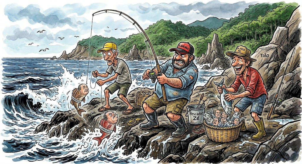 — Beltrano, se não tiver pingulão, leva pra casa uns robalos, que é o peixe preferido dos políticos! Rá, rá, rá, rá...