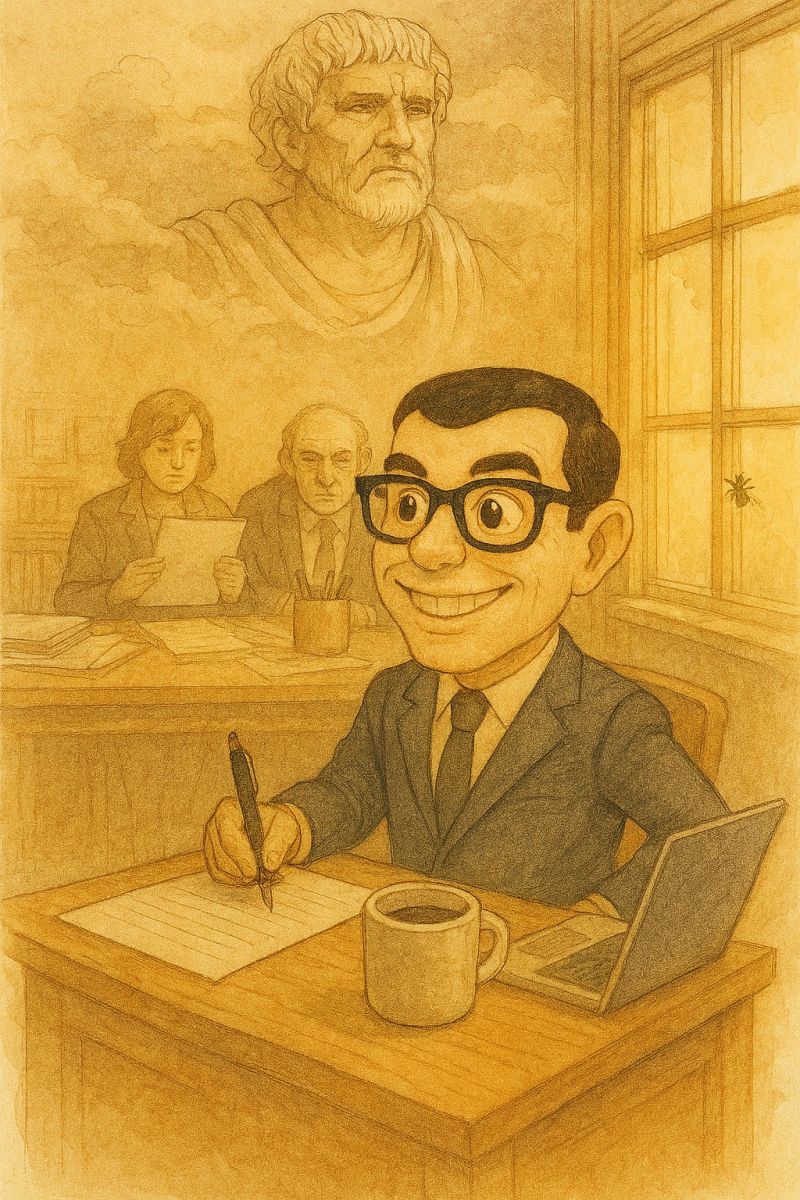Quando voltei ao trabalho, a escola parecia exatamente a mesma: paredes amareladas pelo sol que insistia em invadir as janelas, carteiras desalinhadas como soldados cansados e um corredor tão silencioso que até Sêneca, se ali estivesse, teria perguntado se todos já haviam alcançado a vida útil ou apenas estavam adiando a existência.