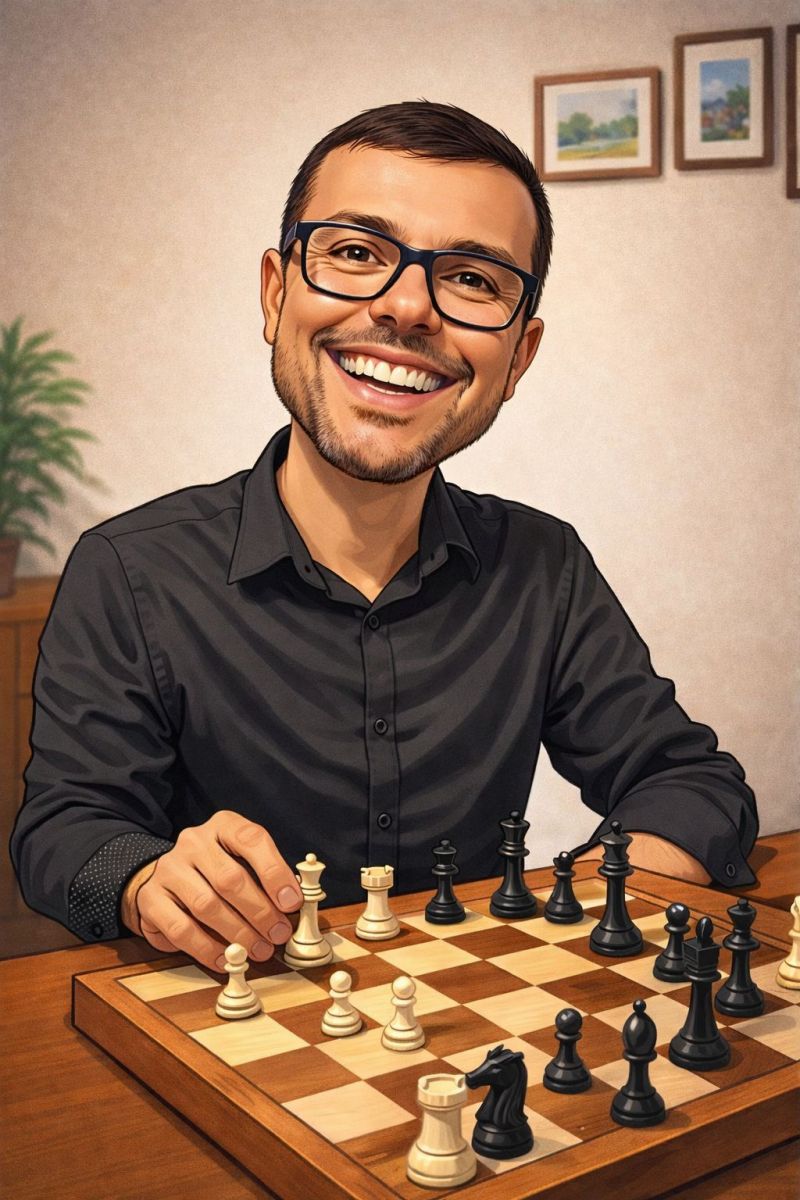 Sentamos, e as peças estavam organizadas com uma disciplina que eu claramente não possuía. A aula começou. Com as peças brancas, fiz meu primeiro movimento: um avanço tímido, quase hesitante. Um peão que parecia refletir perfeitamente seu comandante: teimoso, mas sem muita noção de onde queria chegar o que, pensando bem, também descreve boa parte das minhas decisões fora do tabuleiro.