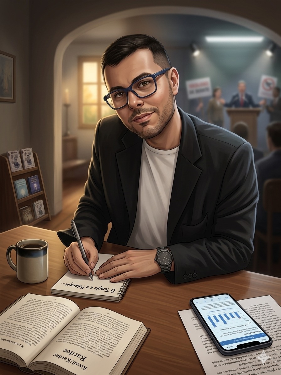 O fim de semana sempre me provoca um entusiasmo quase infantil. Há algo de sagrado nesse intervalo da rotina: a possibilidade de desfrutar, sem culpa, do tempo de qualidade com meu filho, de namorar minha esposa sem a pressa dos dias úteis e de me perder, legitimamente, nas páginas dos meus livros favoritos.Cheguei ao centro cultural e, como sempre, fui impactado pela beleza do espaço. O prédio, com sua arquitetura acolhedora e seus ecos suaves de passos e vozes, parecia convidar não apenas ao aprendizado, mas também à contemplação. Havia um cheiro leve de café no ar, misturado ao silêncio respeitoso típico dos lugares onde a cultura ainda é levada a sério ou, pelo menos, fingimos muito bem que é.