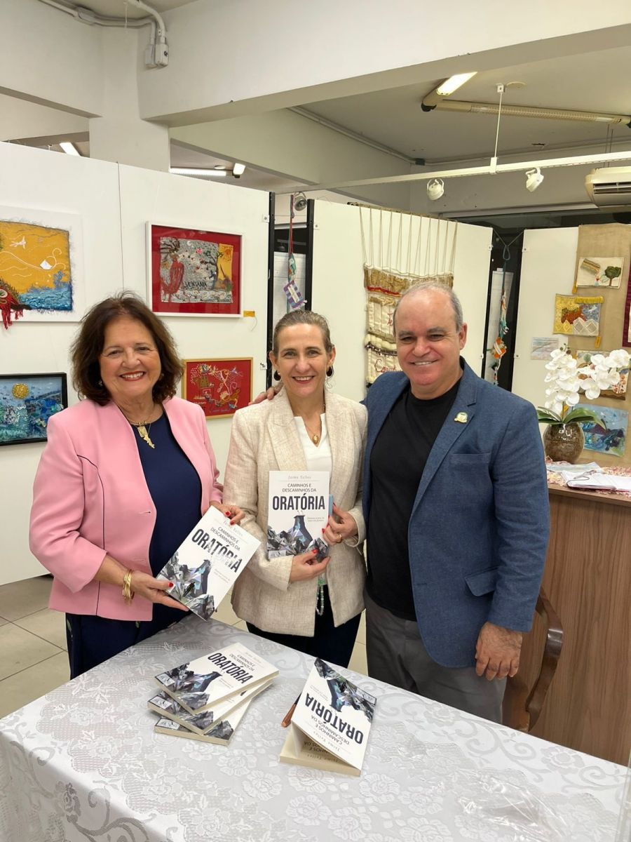 LIVRO. O livro "Caminhos e Descaminhos da Oratória", de Jaime Telles, foi lançado e já está no acervo da Biblioteca Pública de SC. A obra foi viabilizada pelo Programa de Incentivo à Cultura (PIC) do Governo de Santa Catarina, permitindo a distribuição gratuita de exemplares em vários municípios. O autor tem participado de eventos e sessões de autógrafos; em uma dessas sessões, recentemente, presenteou o governador Jorginho Mello e o ex-presidente Jair Bolsonaro (por intermédio de Carlos Bolsonaro). A próxima sessão de autógrafos será em Chapecó, dia 6 de novembro. O autor também se dedica a novas obras e ao seu podcast.