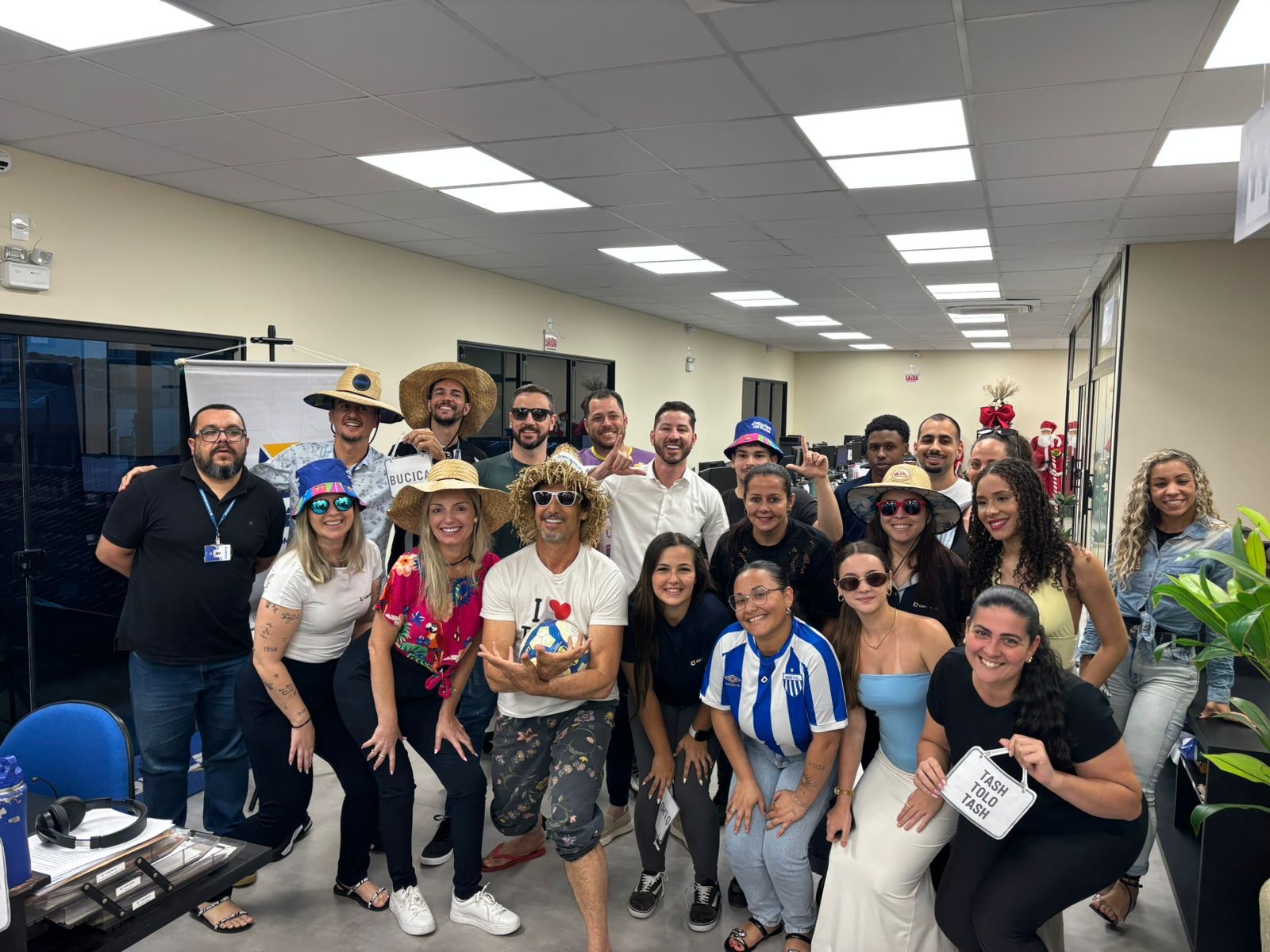 HUMOR INCONFUNDÍVEL. A tarde desta quarta-feira (3) foi de muita animação na sede da Liderança Serviço. As equipes de suprimentos, benefícios, logística e gerência administrativa receberam uma visita especial: o irreverente Mané Darci, que esteve no local para gravar o vídeo de final de ano que será exibido nas comemorações internas de 2025. Com seu humor inconfundível, nosso querido Mané Darci esbanjou carisma e talento, arrancando risadas e encantando toda a equipe durante as filmagens. A captação das imagens ficou por conta da empresa palhocense DNA Digital, garantindo profissionalismo e aquele toque especial que o momento merecia.