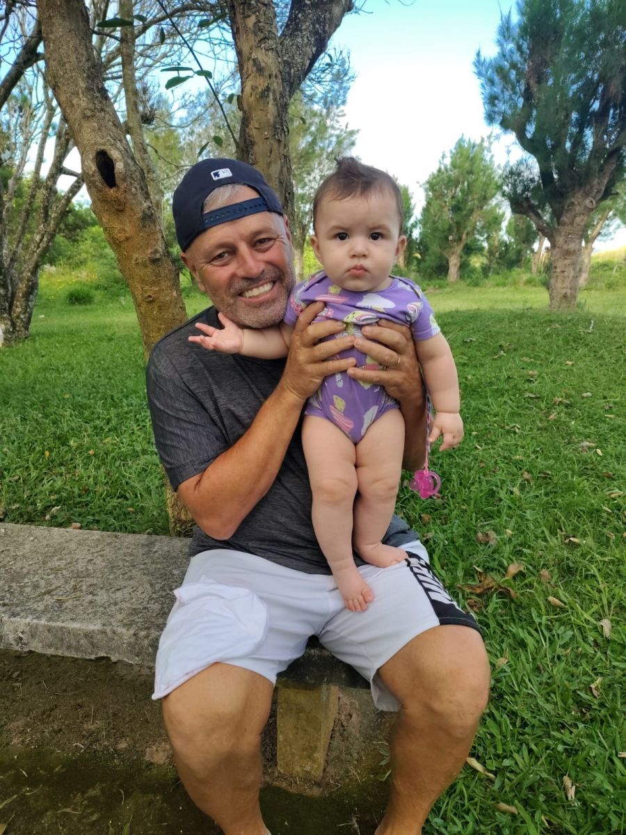 REGISTRO. Nosso leitor e amigo Duda Broering, mostrando todo o carinho com a neta Maria Antonella. Maria é filha do seu filho Alexsander e da esposa, Milene. Os vovôs corujas Duda e Andréa desejam toda a felicidade do mundo à linda princesa.