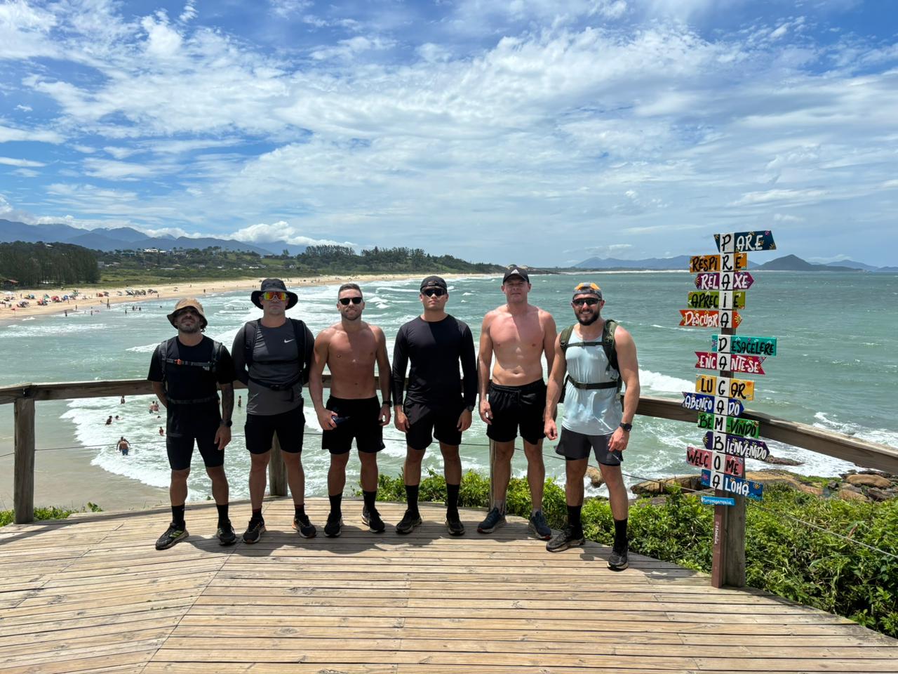 DESAFIO, AMIZADE E BELAS PAISAGENS. Um grupo de jovens amigos policiais mostrou que disposição e companheirismo também fazem parte da rotina fora do serviço. No dia 13 de janeiro, eles encararam o desafio de sair da Praia do Rosa e chegar até a Guarda do Embaú a pé, percorrendo cerca de 38 quilômetros entre trilhas, praias e paisagens de tirar o fôlego. A aventura rendeu registros incríveis e reforçou ainda mais a união da turma formada por Rafael Sagaz, Leonardo Martins, Jhonatan Machado, Thiago Oliveira, Nereu Júnior e Dyego Pereira. Mais do que um desafio físico, a caminhada virou história, amizade e memória para guardar.