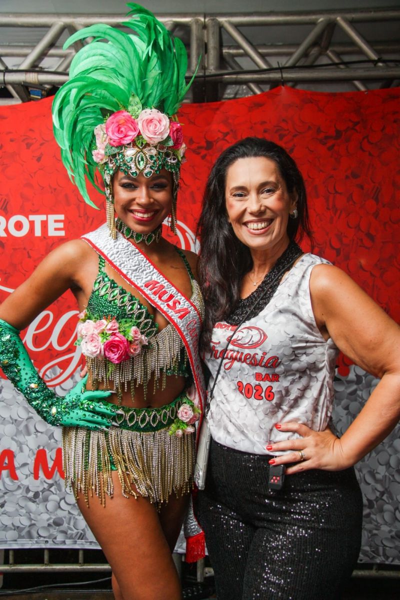 CAMAROTE FREGUESIA. O Camarote Freguesia, sob o comando da empreendedora Carla Costa, encerrou sua participação no Carnaval de Santo Antônio de Lisboa com recorde de público e organização. O espaço consolidou-se como um dos mais prestigiados da folia, contando com o brilho da Musa 2026, Michelle Witkowski. O evento teve a assessoria de imprensa da jornalista Maristela Brittes. Na foto, Michelle e Carla.