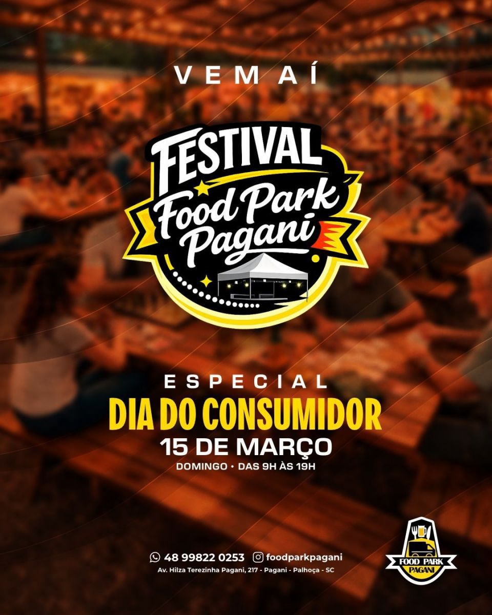 FESTIVAL FOOD PARK PAGANI. No dia 15 de março, o Food Park Pagani será palco de um evento multicultural voltado para todas as idades. A partir das 9h, o Festival Food Park Pagani oferece uma programação que une gastronomia, lazer e nostalgia, com entrada franca. O evento contará com uma praça de alimentação diversificada, operada por food trucks, e um Festival de Chope com variados rótulos, como IPA e Pilsen. Para o entretenimento, estão confirmados: música ao vivo; feira de artesanato local; exposição de carros antigos; espaço kids e recreação com brincadeiras de época e pintura facial; sorteio de brindes.
