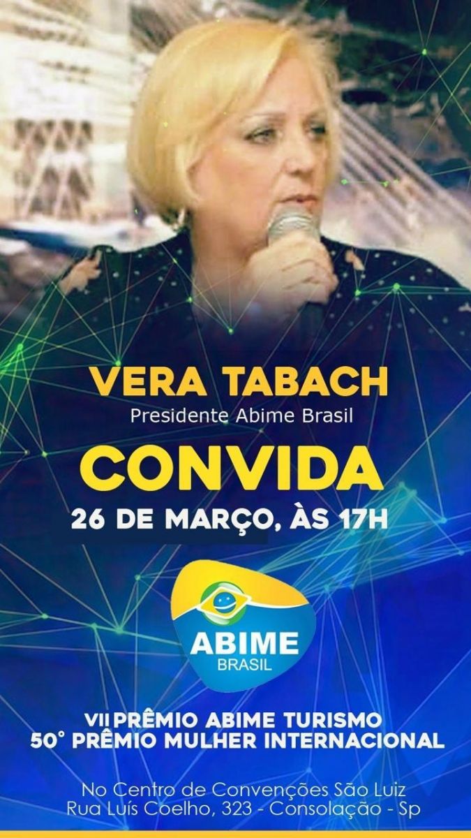 PREMIAÇÃO. No dia 26, São Paulo será palco de uma das celebrações mais tradicionais do país em reconhecimento ao protagonismo feminino e ao setor de turismo. A Associação Brasileira de Imprensa de Mídia Eletrônica e Digital (Abime Brasil) realiza o 7º Prêmio Abime Turismo, em conjunto com a histórica 50ª edição do Prêmio Mulher Internacional. Fundado em 1976 pela jornalista Vera Tabach, o Prêmio Mulher Internacional chega ao jubileu de ouro celebrando profissionais de destaque em diversas áreas. O evento é alusivo ao Mês da Mulher e busca dar visibilidade a trajetórias femininas que impactam positivamente a sociedade. Além das homenagens às mulheres, a noite também será dedicada aos profissionais e jornalistas que atuam no fortalecimento e na divulgação do turismo brasileiro. A cerimônia integra a programação oficial da Feira Expotel e conta com a colaboração institucional da ONU Turismo.