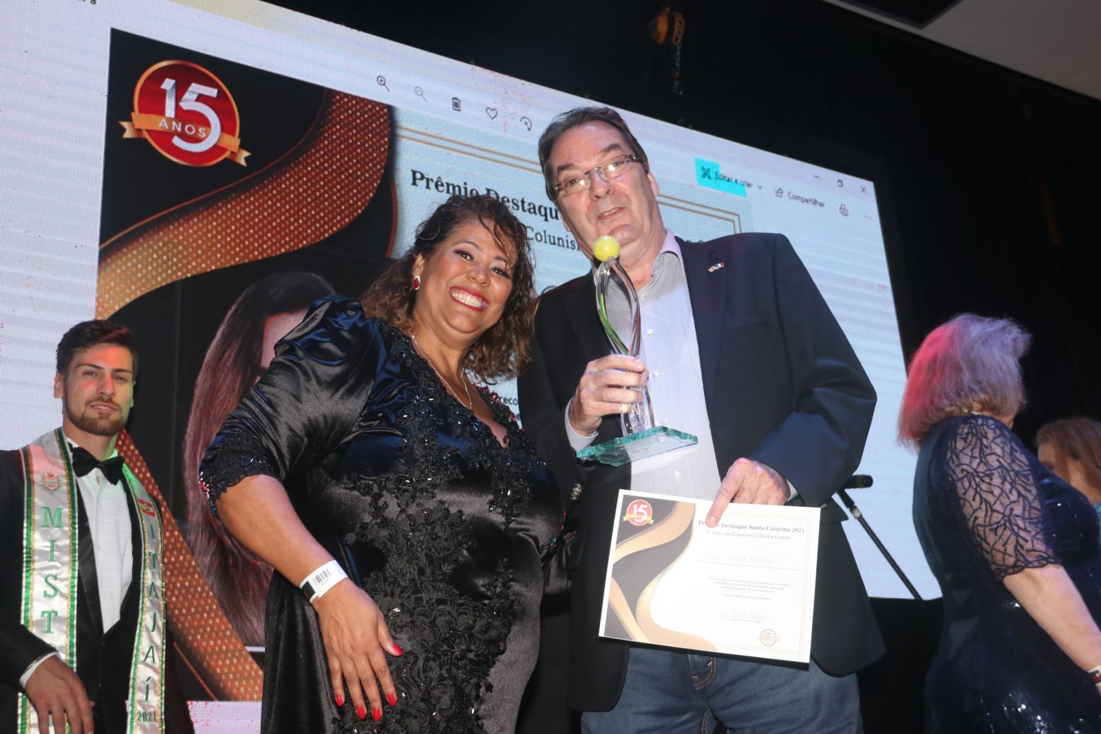 DESTAQUE SC 2021. Durante as comemorações dos meus 15 anos de colunismo social, realizei uma festa repleta de homenagens. Destaco Miriam Braga, que preside o Instituto Catarinense de Conscientização (ICC); o mister e a miss Santa Carina Mundo 2021/22, Felipe Moreno e Lara Matteus; a doutora Bia Kuerten; a jornalista Simone Macedo; o famoso casal, que fez sucesso no Caldeirão do Huck, Don Zizinho e Dona Cidinha; e a produtora de eventos Jussara Martins!