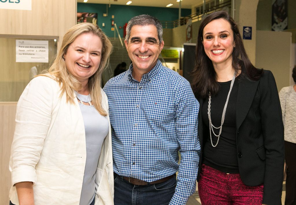 Larisa Hemkeimer Webber de Mello (E), Joel Aterino de Souza, da Extratos da Terra, e Aretuza Sainz, professora da Fatenp
