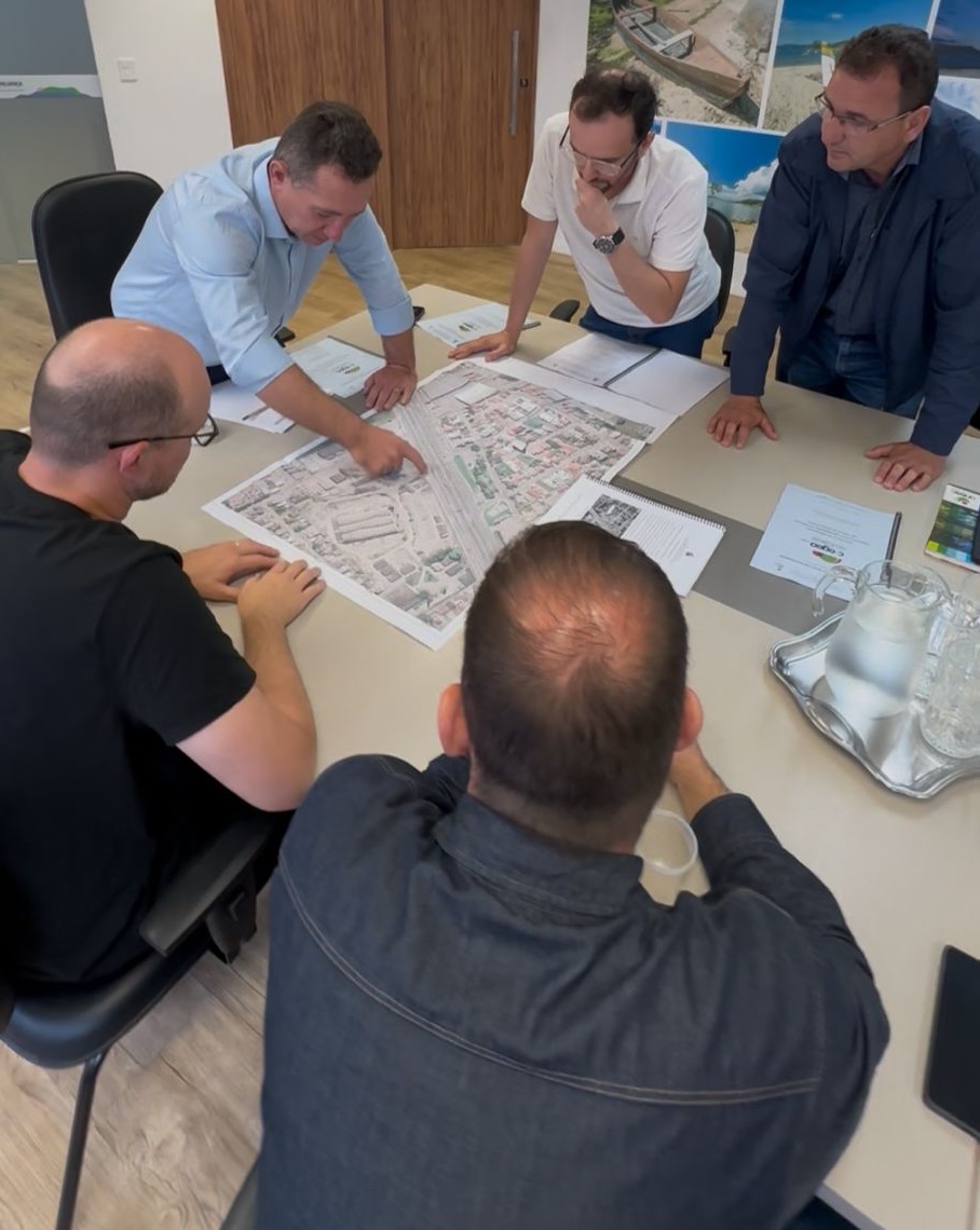 Com o objetivo de alinhar os encaminhamentos para dar início à obra do elevado do viaduto do Caminho Novo, uma reunião estratégica sobre o assunto foi realizada nesta quarta-feira (12), na Prefeitura de Palhoça.