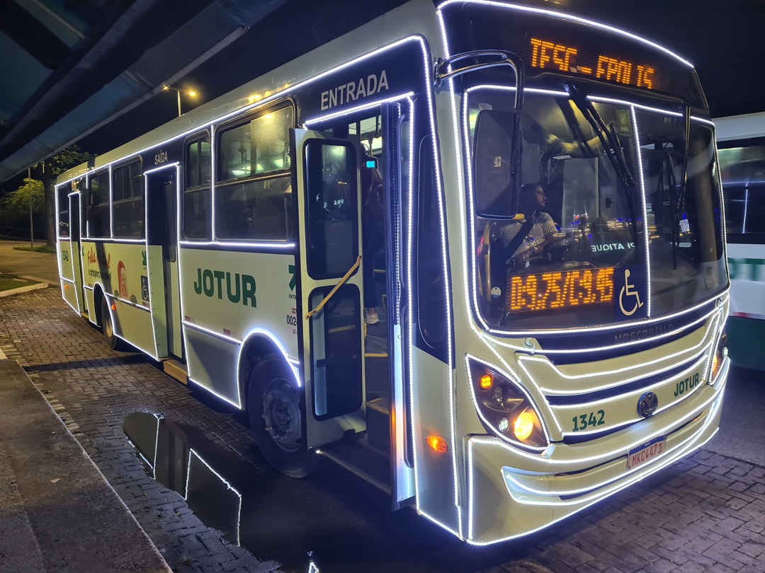 Pelo terceiro ano consecutivo, desde que resgatou a prática que sempre encantou a população de Palhoça nesta época do ano, a Jotur entra no clima do Natal com o ônibus iluminado. Nesta segunda-feira (1), o veículo já circulou pelas ruas do município em linhas específicas operadas pela empresa. A cada dia, novas linhas são escolhidas para receber a ação – clique aqui e confira as datas e linhas já definidas!