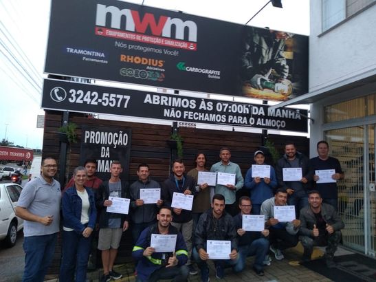 Turma que encerrou recentemente o curso de treinamento para trabalho em altura (NR-35), promovido pela MWM Equipamentos de Proteção e Sinalização, da Ponte do Imaruim.