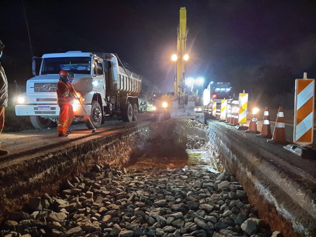 A atividade de reconstrução ocorre em segmento previamente mapeado em que a manutenção superficial já não é mais suficiente. Por isso, as equipes realizam a escavação (entre 75cm e 1m25cm) e reconstrução da pista no trecho da obra. Ao todo, serão reconstruídos 200 metros nesse trecho –cerca de 50 metros por noite.