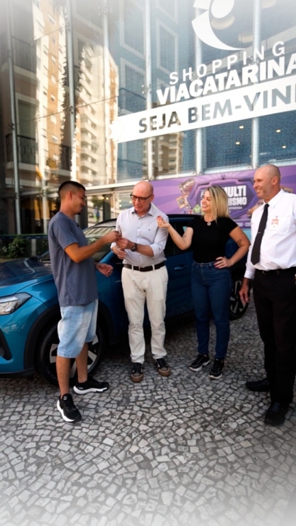 Com 23 anos, casado e pai de uma filha de 2 anos e meio, Brayan mora em Balneário Piçarras onde trabalha como vendedor e instrutor de Muay Thai e aproveitou uma vinda a Palhoça para conhecer as praias e também o ViaCatarina e o Supermercado Giassi. Fez compras de Natal e Ano Novo nas lojas Beagle e Studio Z. Trocou 6 cupons. Um deles foi sorteado e lhe rendeu o prêmio, seu primeiro carro 0km.