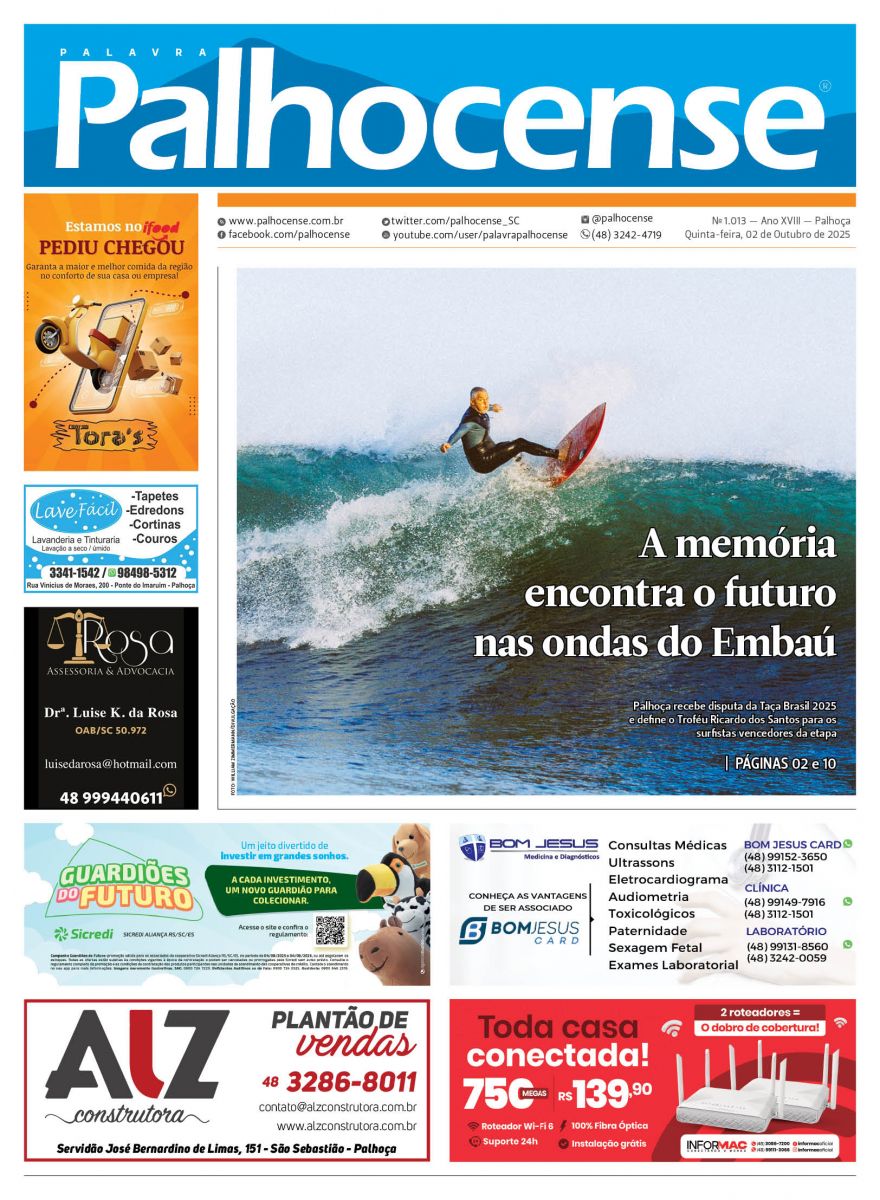 Clique aqui ou na imagem abaixo e leia a edição 1.013 do jornal Palavra Palhocense!