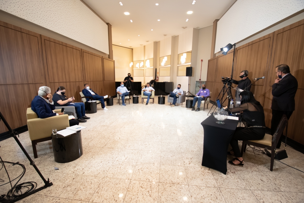 O tradicional debate entre os prefeituráveis de Palhoça realizado pelo jornal Palhocense e pela Acip, embora com formato alterado devido à pandemia, foi mais um sucesso. O auditório lotado do cinema do ViaCatarina deu lugar ao salão de eventos do Slaviero Hotel, na presença de poucos assessores e equipe técnica. Porém, ao vivo, pelo YouTube do Palhocense, mais de 1.400 internautas acompanhavam cada fala dos sete candidatos.